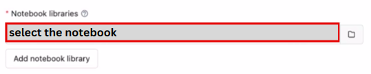 5. Select the Notebook libraries, in this you have to select the notebook that contains the Code either in SQL or Python