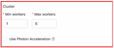 8. You can also select the number of workers for autoscaling purposes and photon Acceleration.