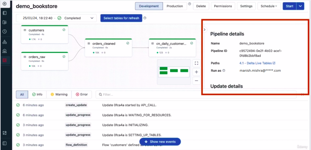 Example: dbfs: /mnt/demo/demo_bookstore/demo_bookstore_dlt_db