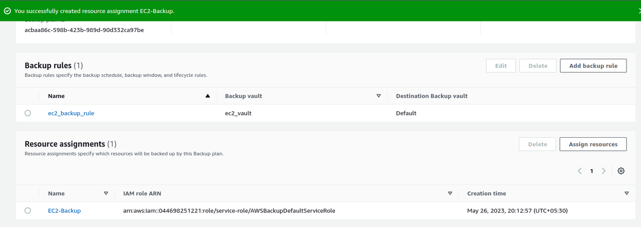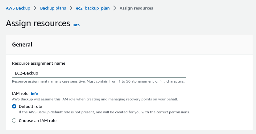 Now, we need to assign resources for which we are creating this backup plan. Mention here the resource assignment name.