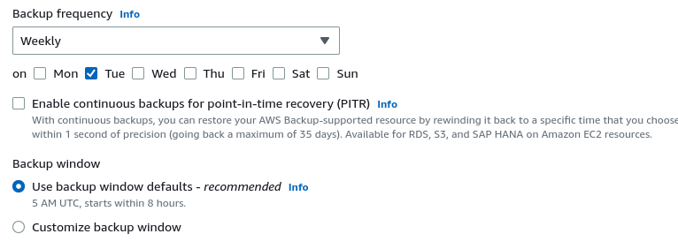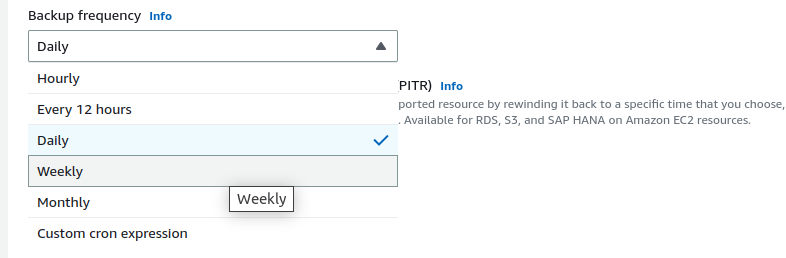 - We can define backup schedules and set the frequency at which backups should be created. AWS Backup handles the automatic creation of backups according to the defined schedules.