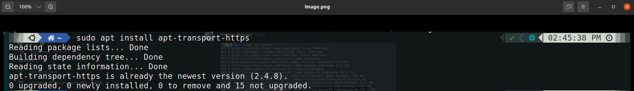To allow access to your repositories via HTTPS, you need to install an APT transport package by running command :