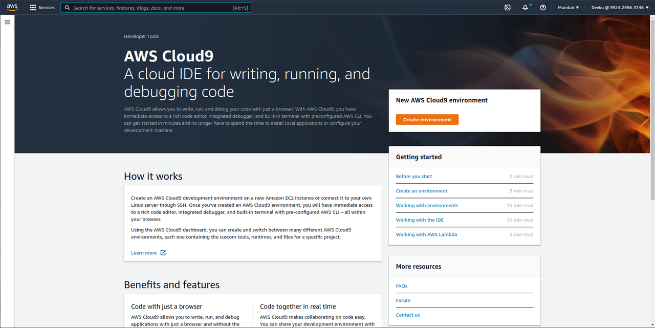 When the Cloud9 is visible, click “Create Environments.”