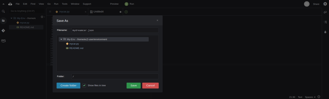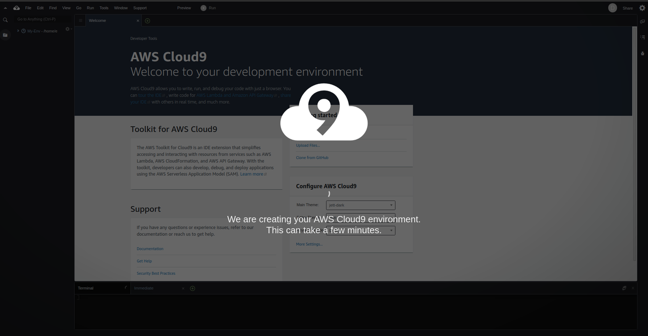 It contains a collection of tools you use to code, build, run, test, and debug software, and helps you publish it to the cloud. You are accessing the AWS Cloud9 IDE through a web browser. You can configure the IDE according to your preferences.