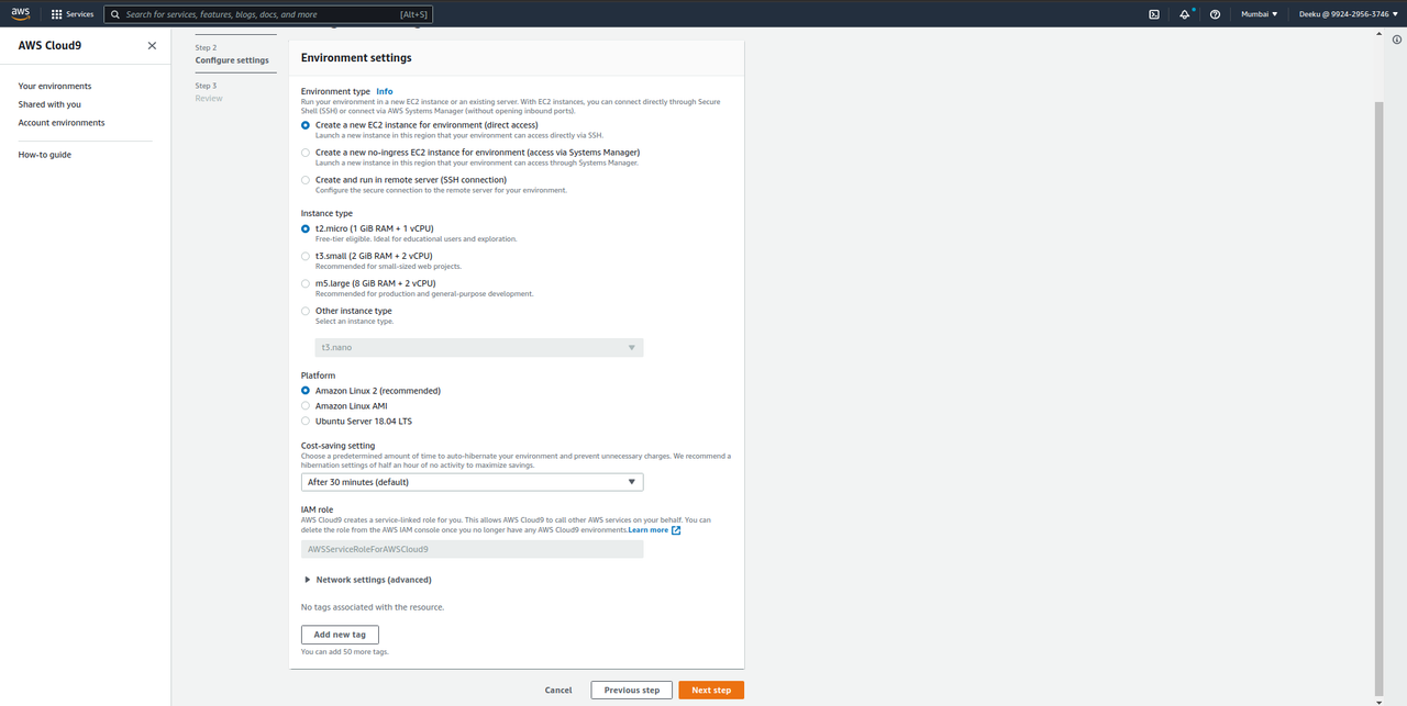 Step 1: Cloud9 Environment Setup