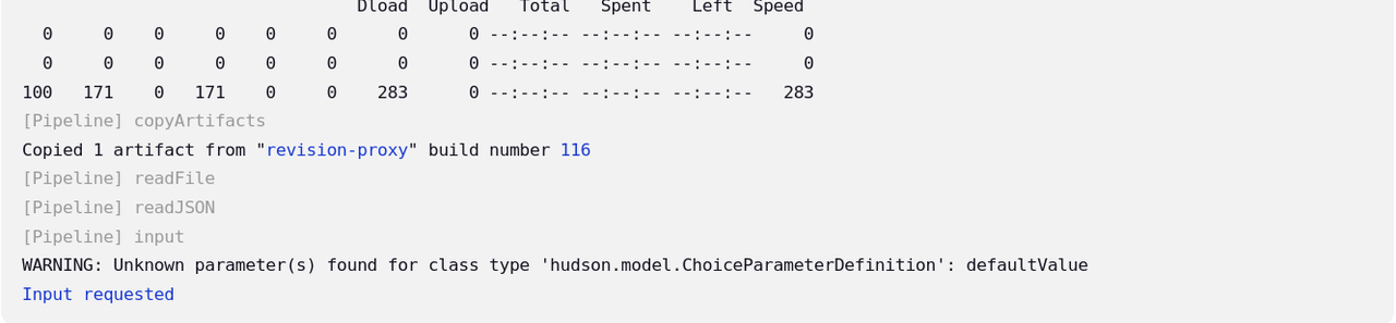 So the above code will use input parameter as a part of user input to select the revision to rollback proxies from the dropdown menu to deploy proxy to some other revisions as Choose your revision to deploy proxy and it also copying the artifacts that was generated in the proxy deployment job as a file.