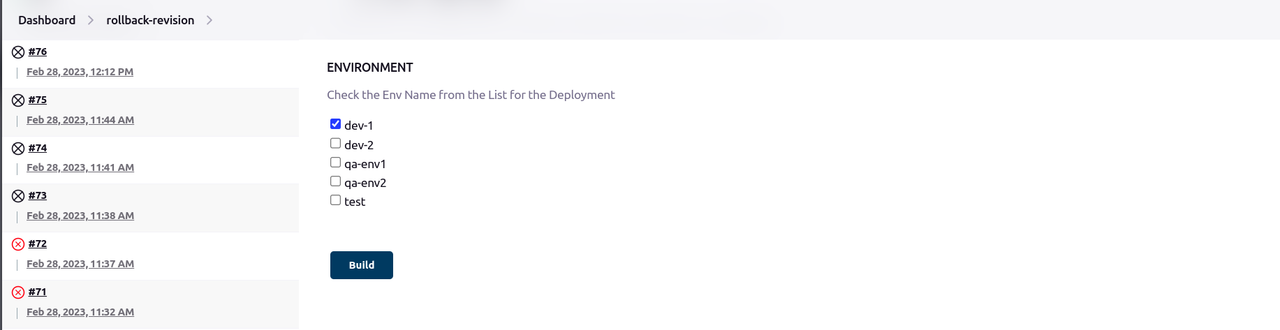 Build the rollback pipeline as Build with Parameters enter the values for the parameters asked .