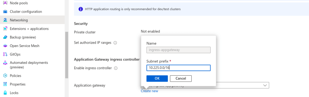 5. Select Enable ingress controller check box . After that it will ask for application gateway details . Click on add new and then click on OK .