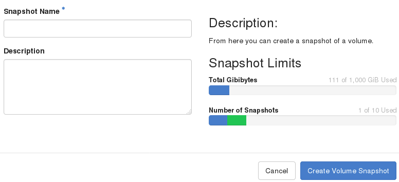 Confirm your changes. The dashboard shows the new volume snapshot in the Volume Snapshots tab.