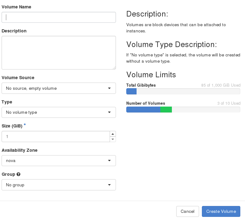 Creating a volume in Openstack: