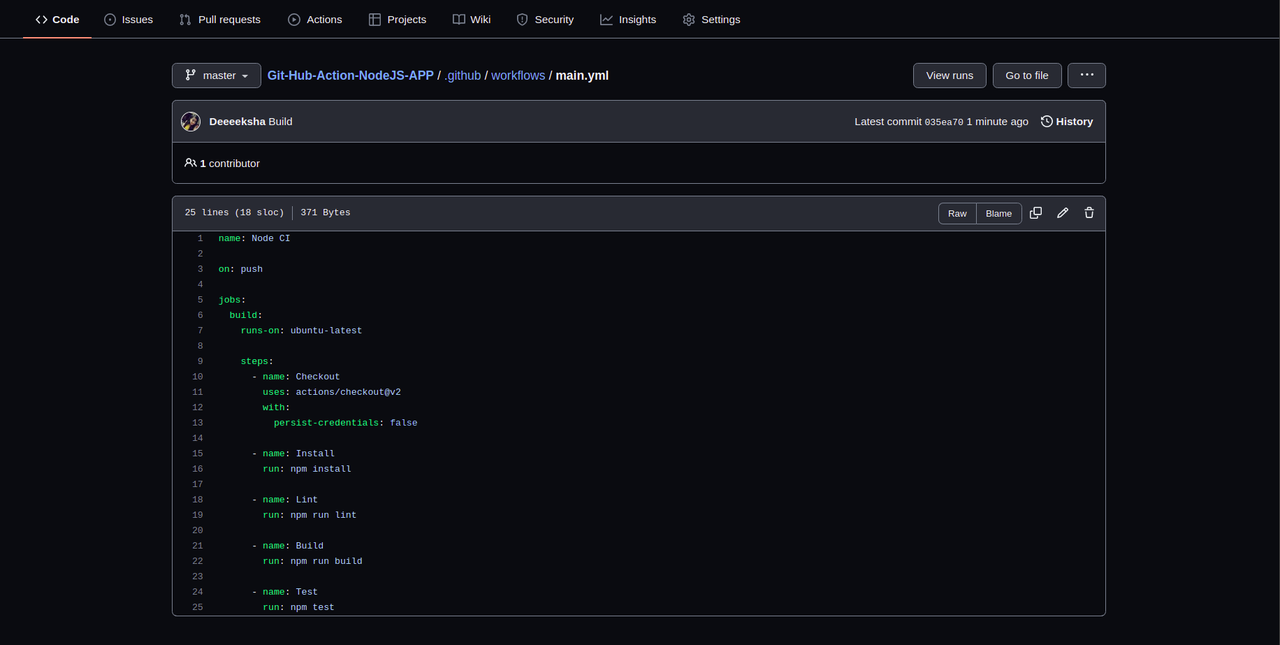 jobs: – The job we want to run, in this case, we are setting up a build job.