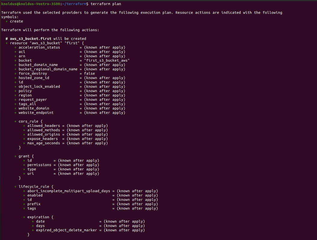 Step 4: Run the command “terraform plan”. This is used for verification of errors in the file and also shows the changes that will be made in order to achieve the desired state.