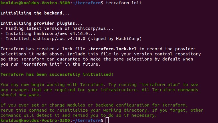 Step 3: Now use the following command “terraform init”, for terraform to install the required plugins defined in the file.