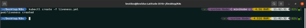 Let’s deploy this Liveness Pod and observe it behaviour by running the following command: