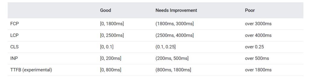 PSI sets the following thresholds in alignment with the Web Vitals initiative: