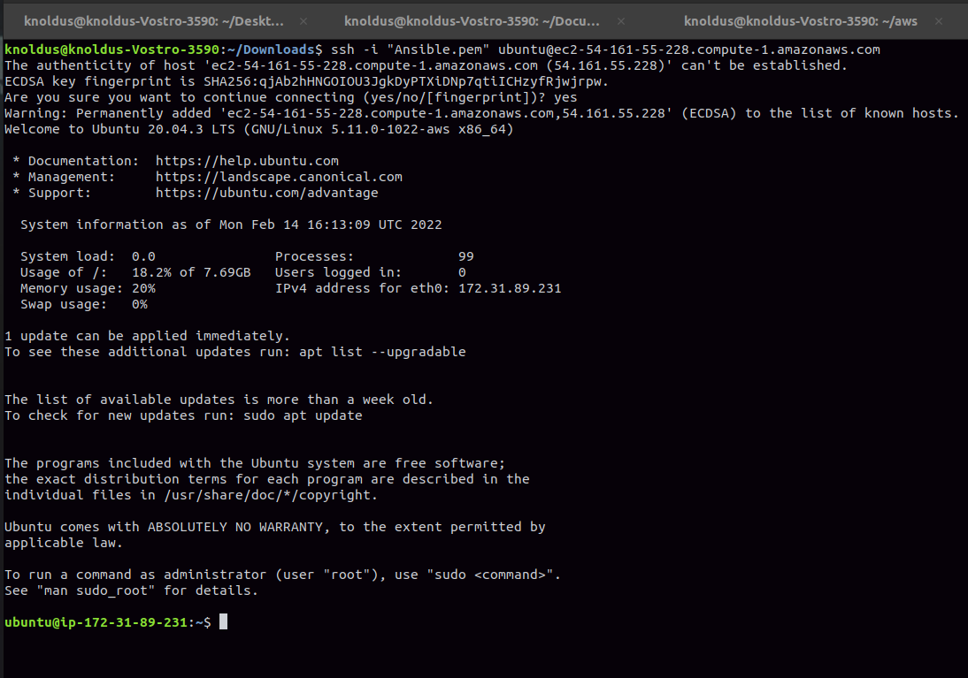 ssh -i "Ansible.pem" ubuntu@ec2-54-161-55-228.compute-1.amazonaws.com