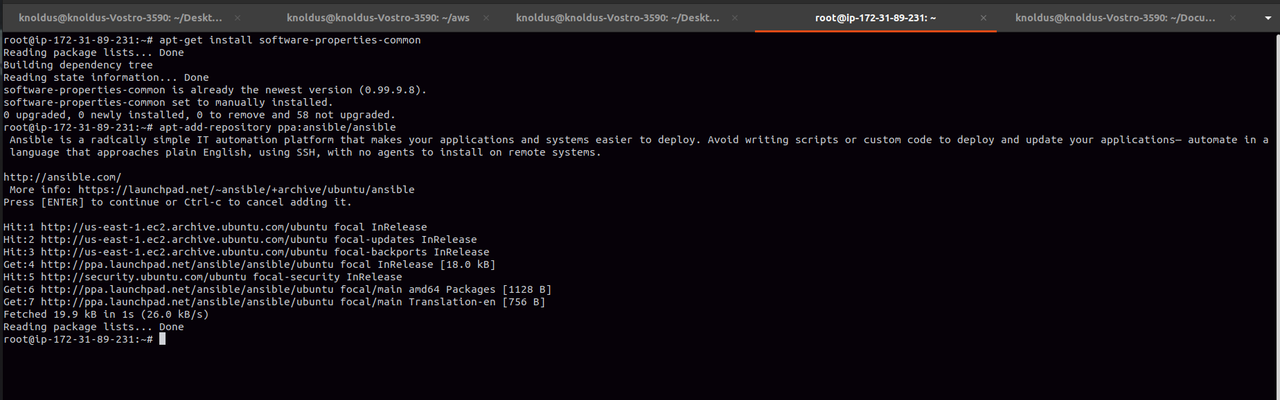 STEP 9: Now we install ansible as follows: