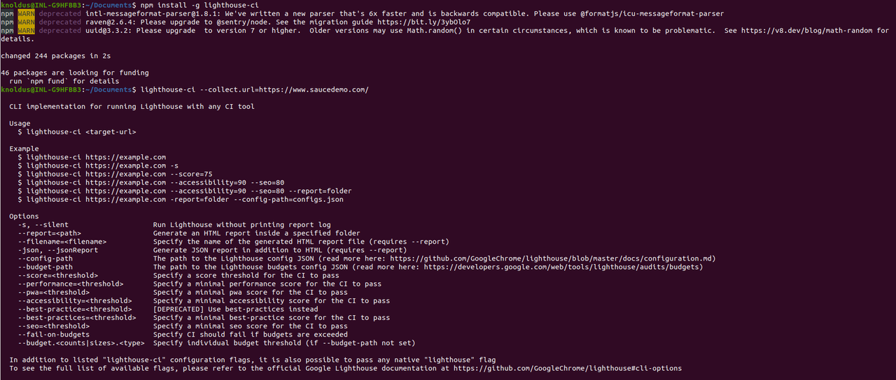 Note: Before installing Lighthouse CI in our system, we must have Node installed in it.
