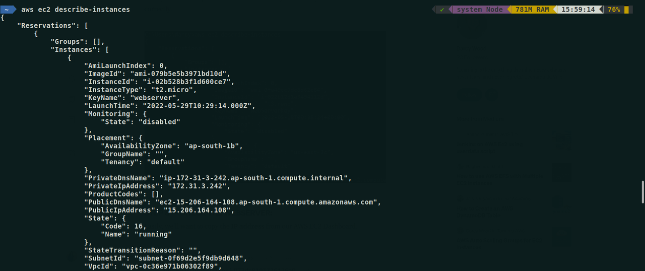 In this command we’re telling AWS we need to begin up an example the usage of our decided on AMI, that we need one example, and that it’s going to be a t2.micro.
