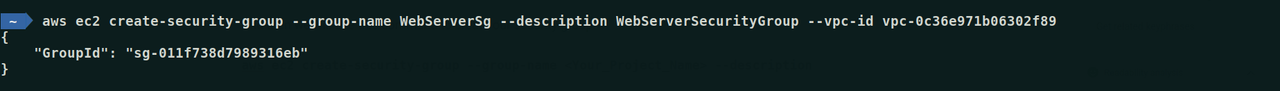 aws ec2 create-security-group --group-name <Your_Project_Name> --description