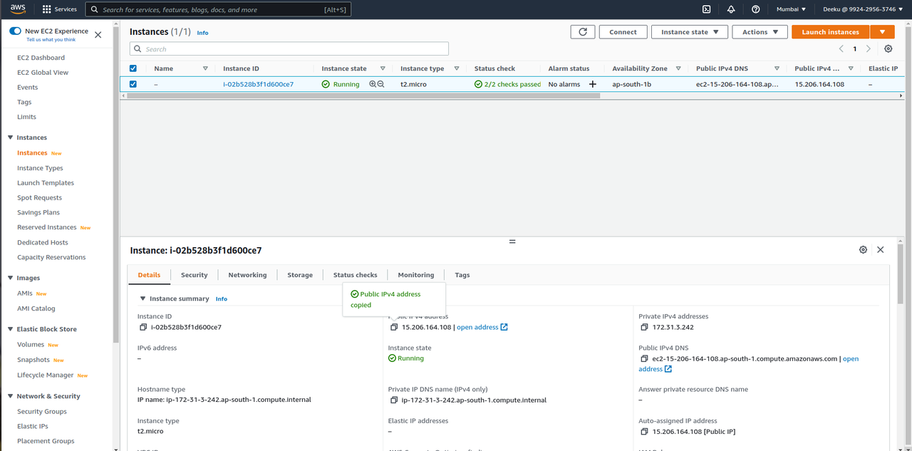 Lastly, we’ll want to copy the IP address from our AWS EC2 Dashboard.