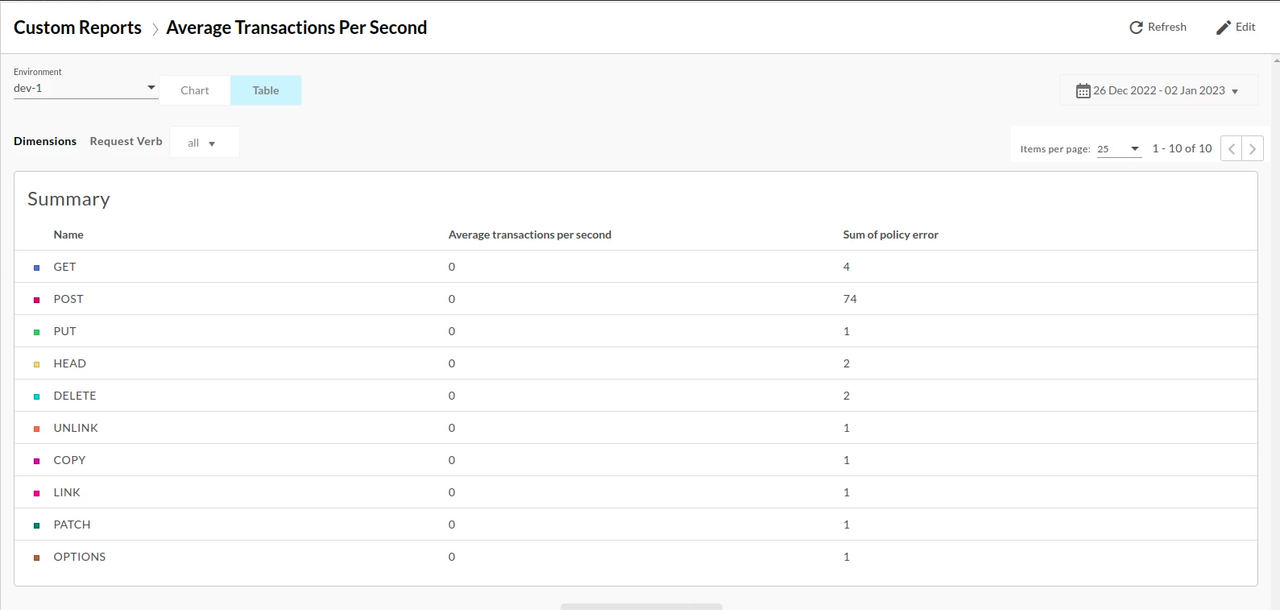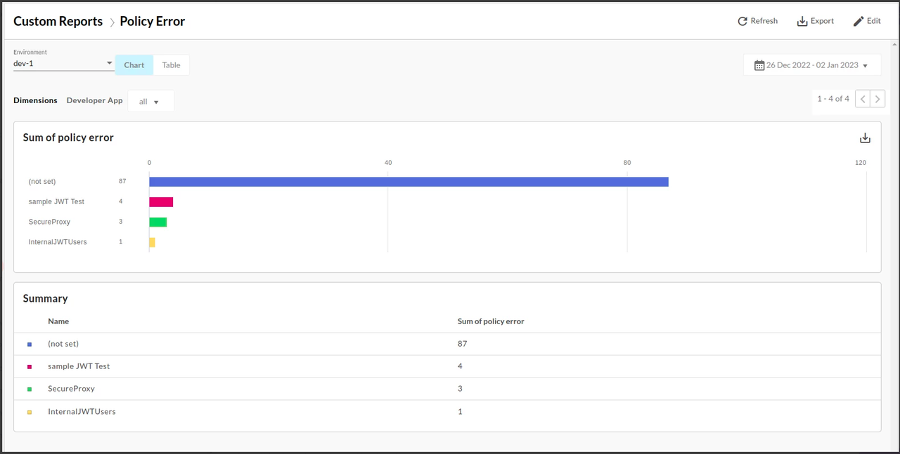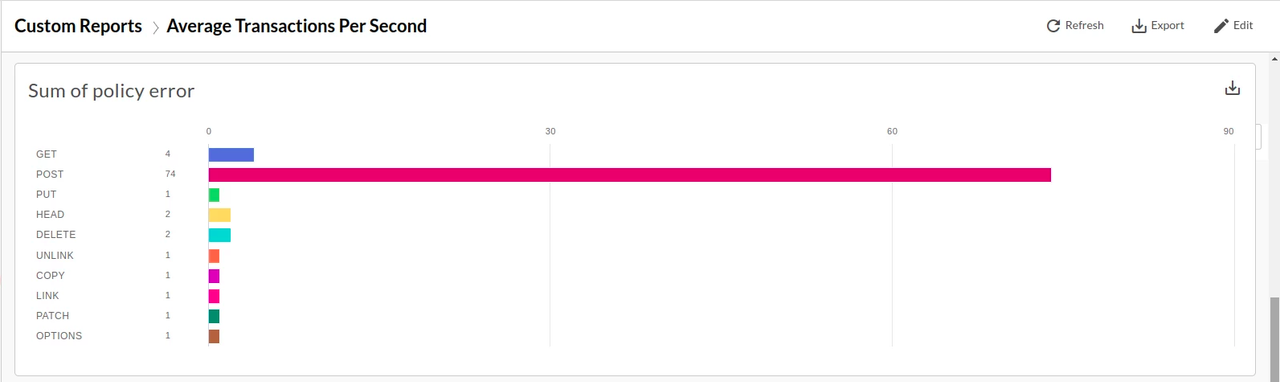 It means that the Total number of policy errors over the specified time period.Custom Reports to check the occurrence of policy errors in the API call displays as: