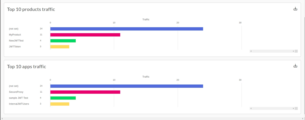 The Traffic Composition dashboard measures the relative contribution of the top APIs, apps, developers, and products to your overall API program.