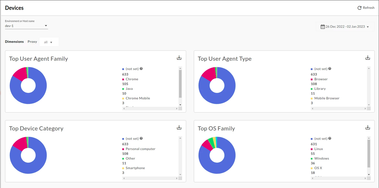 The Devices dashboard tells you about the devices and servers that are being used to access your APIs.