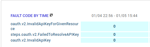 Here as in the above image , you can see the number of responses (0) with fault code oauth.v2.InvalidApiKeyForGivenResource that were returned from 22:56-15:44, on the selected date.