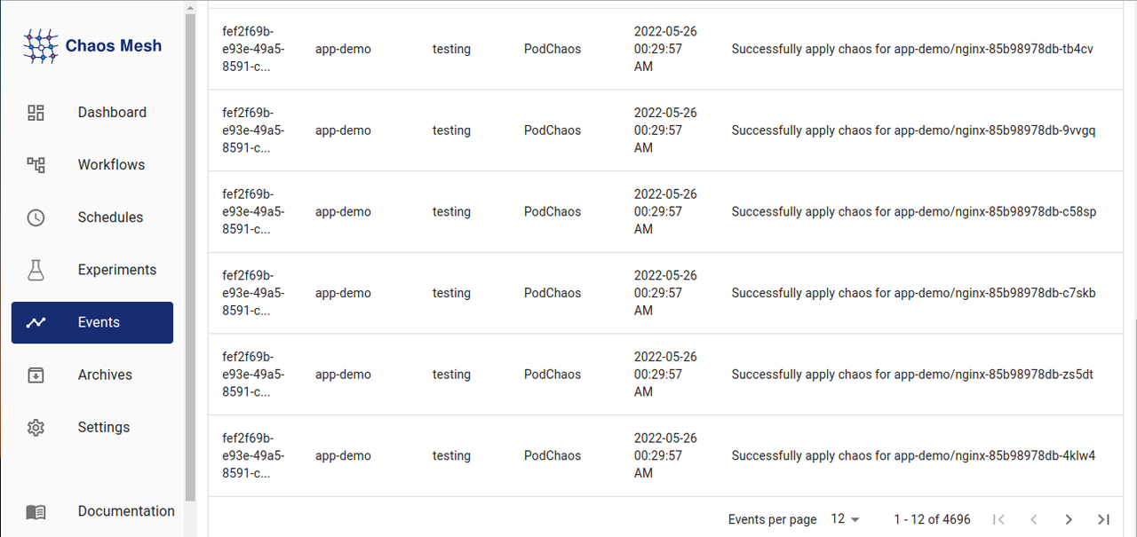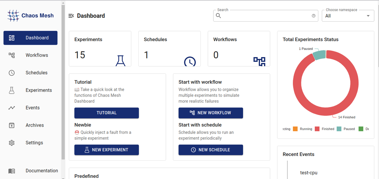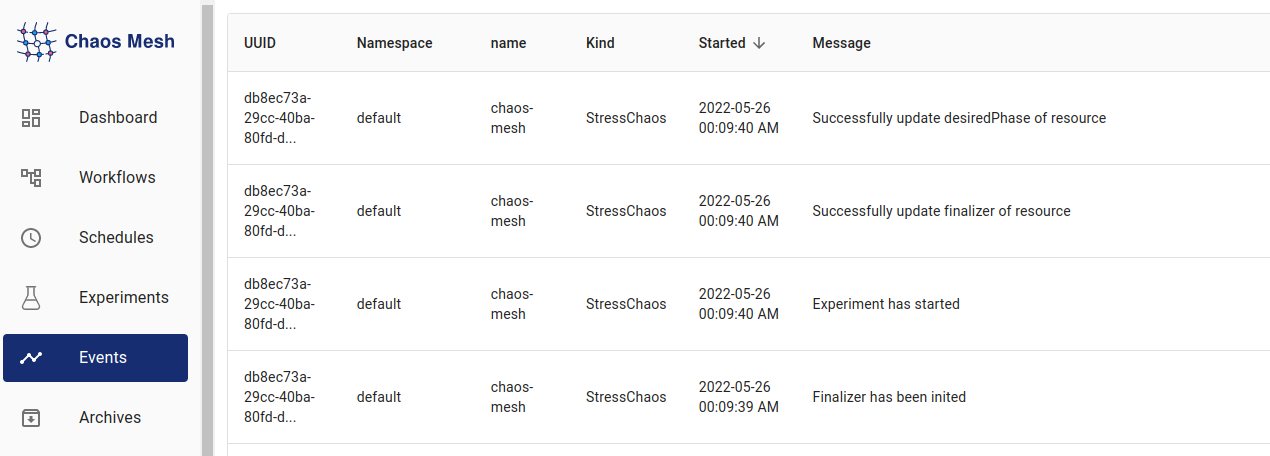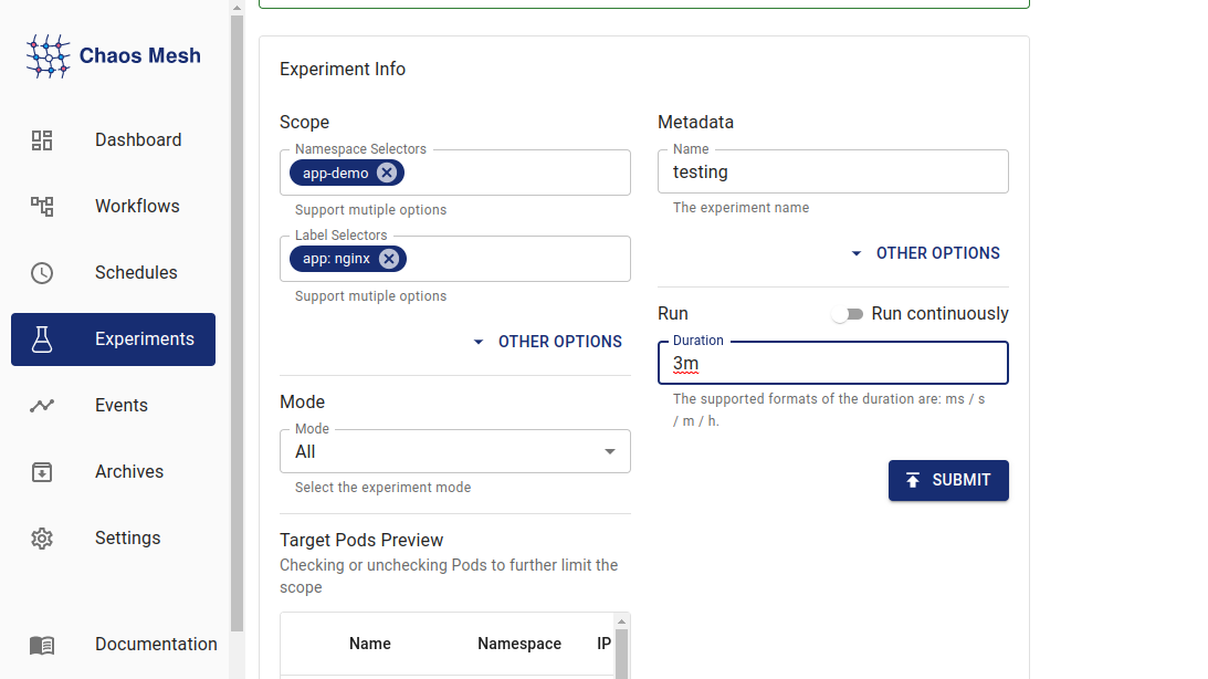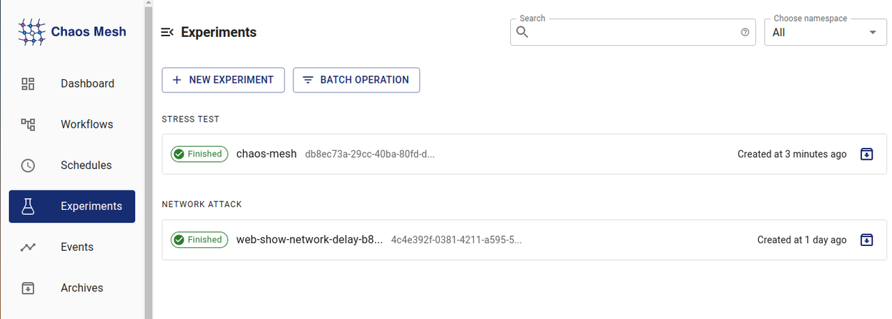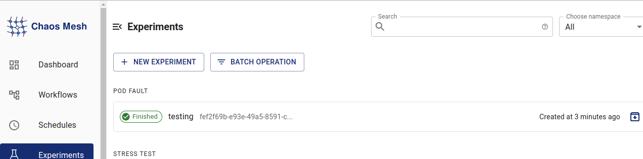 Now, go to the Chaos Mesh Dashboard and check the Experiments