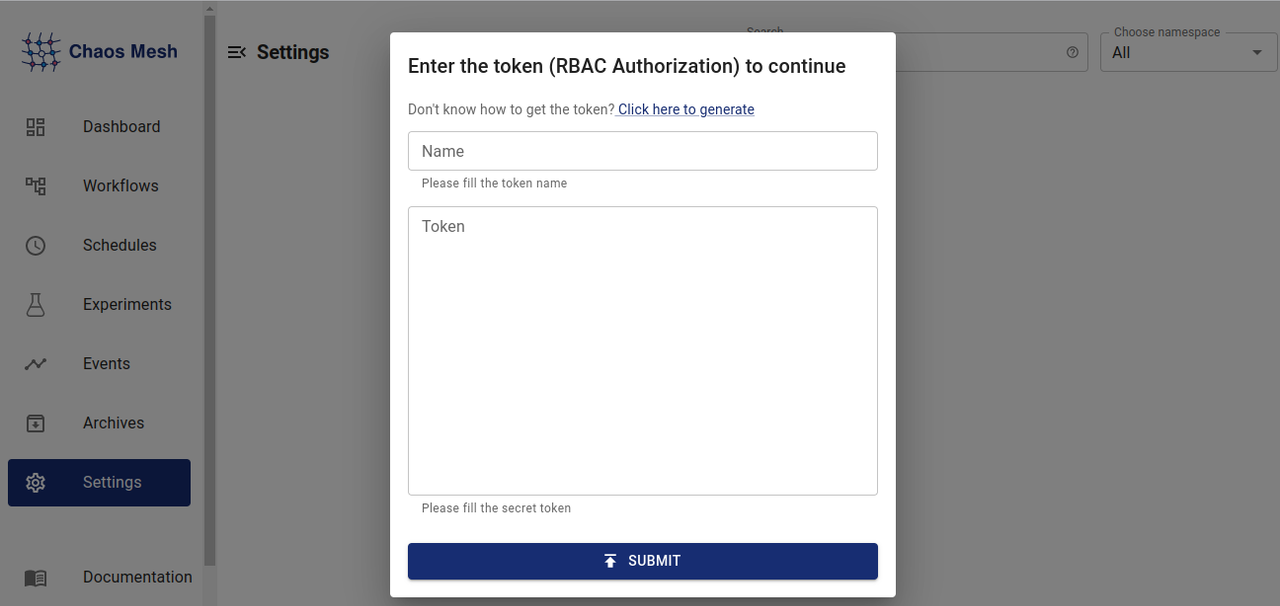 Now open the chaos mesh dashboard