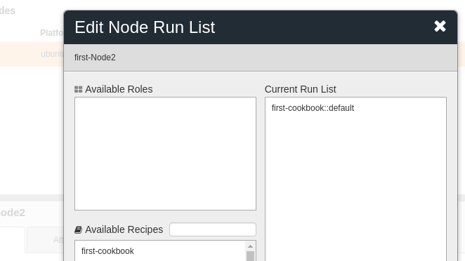 knife node run_list set first-Node2 "recipe[first-cookbook::default]"
