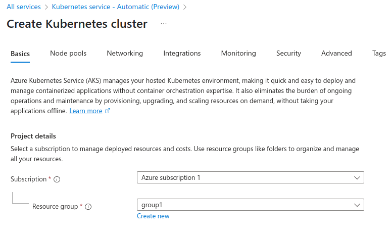 3. We have to provide here all the information for creating AKS. Select azure subscription and resource group.
