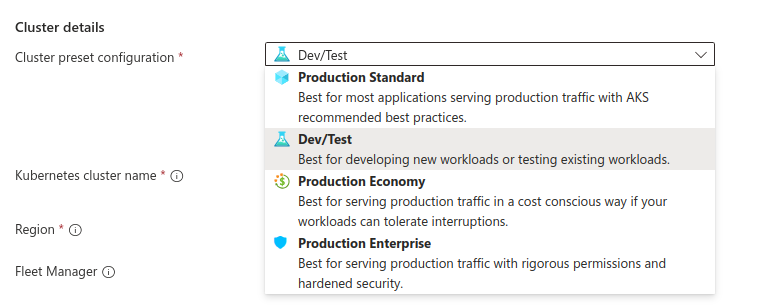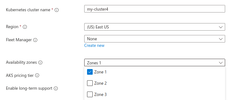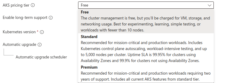 Choose AKS pricing tier i.e. Free, Standard & Premium.