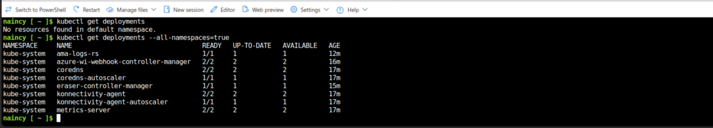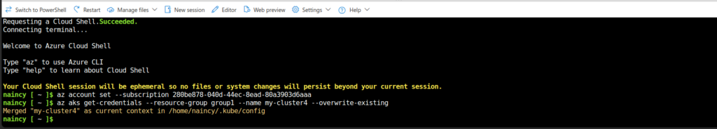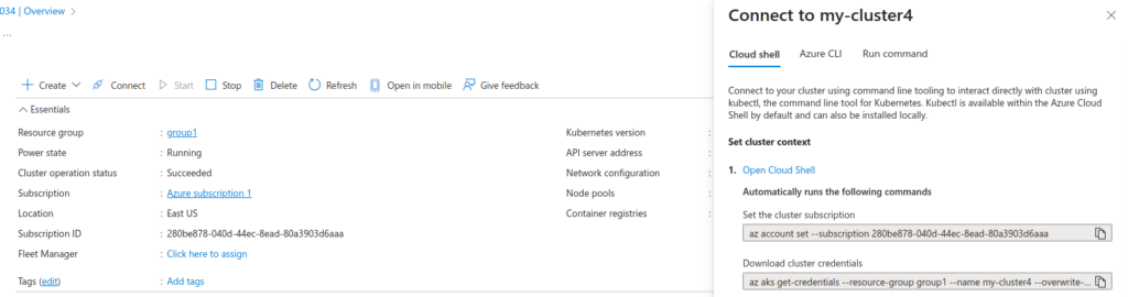 We can easily connect to our AKS cluster using cloudshell.