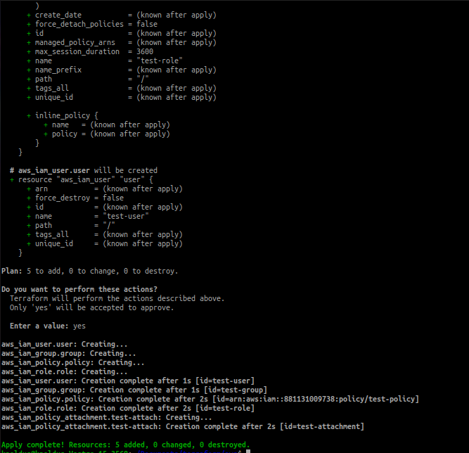 - finally run the command given below to apply it. You will see your IAM roles is creating after providing it the value as ‘Yes’.