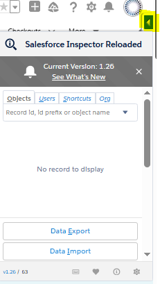 Once installed, you’ll see a small arrow icon on the right side of any Salesforce page. Then, you can log in to your Salesforce org and click the arrow to open Salesforce Inspector.