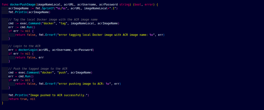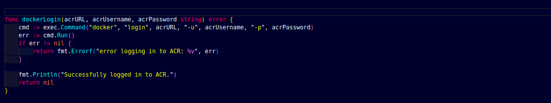 In the same function, we are calling the docker login function so that we can log in to the private ACR and then push the image to that private ACR.