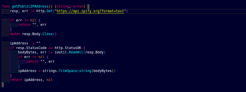 In this function, we are fetching the ipv4 using the URL and then returning that IP.
