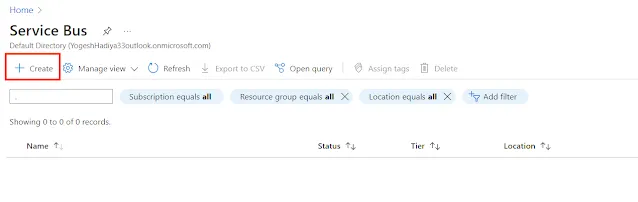 3. Click on the Create Button – Once you’re on the Service Bus page, click on the “Create” button to start configuring your Service Bus instance.