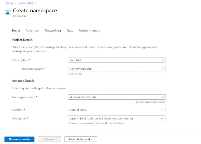 5. Pricing Tier: Choose from Basic, Standard, or Premium tier based on your requirements. Pricing Options: Before finalizing your Service Bus instance, it’s essential to understand the pricing options available. Here’s selecting Basic pricing plan