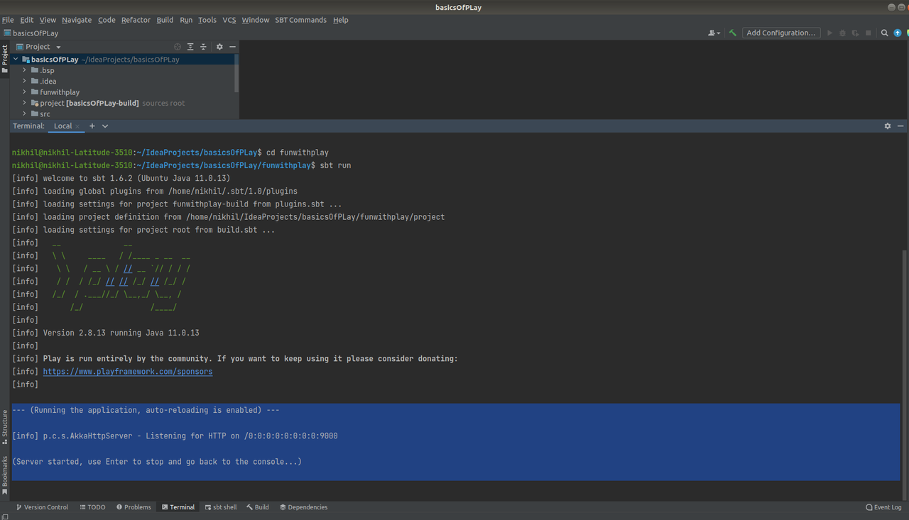 To start with Introduction of Play Framework using Scala we should have sbt and at least java 8 install in our system.
