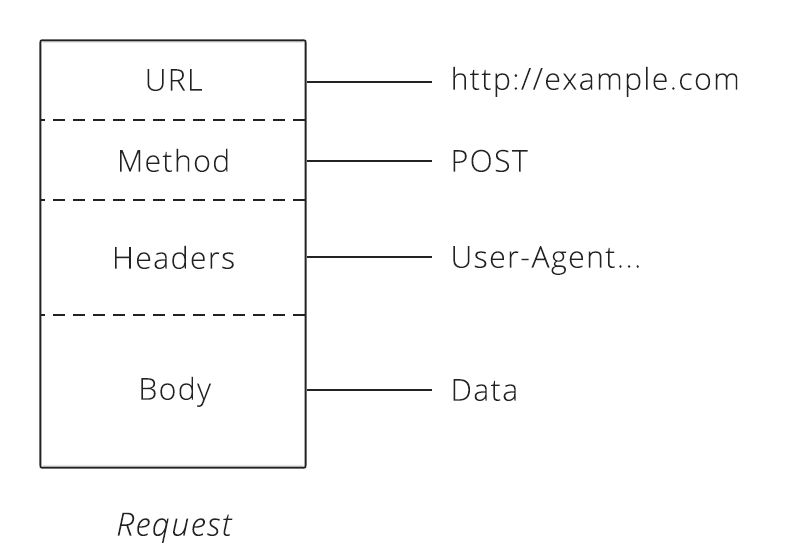 The URL, method, headers, and content are the only components that make up a whole HTTP request.
