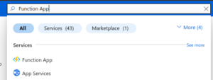 1. Login to the Azure Portal and search for the Function App in search box and select it.