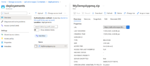 - Or you can retrieve the URL from Azure portal by following Storage Account > Containers > Zip file > URL