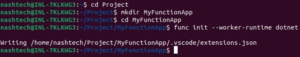 This command creates the necessary files and folders for Azure Function App with .Net runtime.