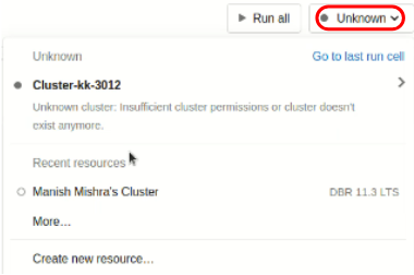 2. To attach the cluster from the notebook create a compute & attach it by selecting the compute.
