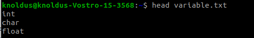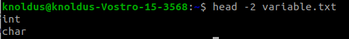 2. head: Shows the first n lines of the specified text file. If no number of lines is specifie, the first 10 lines are print by default.
