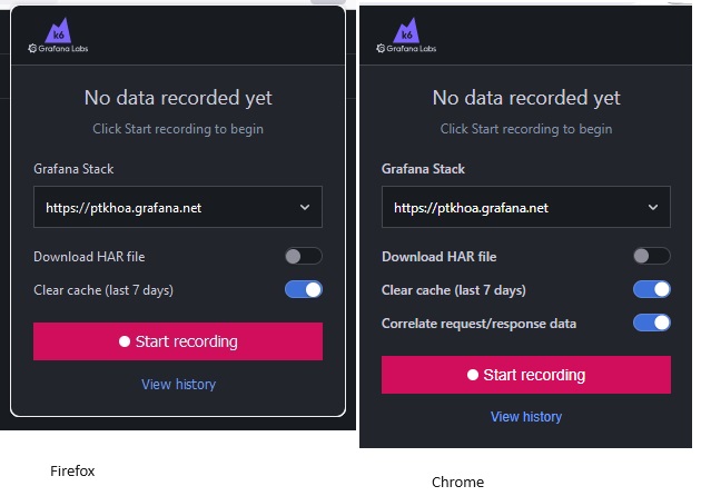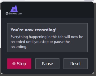 The browser recorder lets you generate a k6 script based on a browser session. It’s available as an extension for Chrome and Firefox.