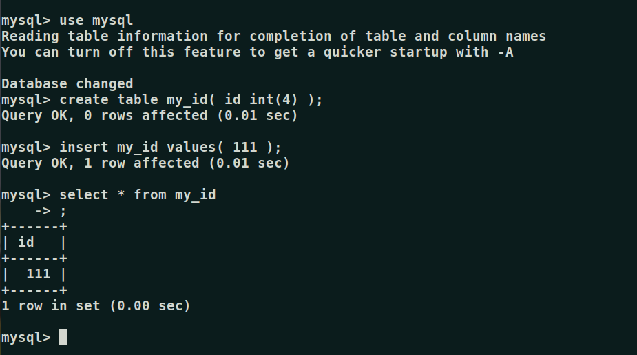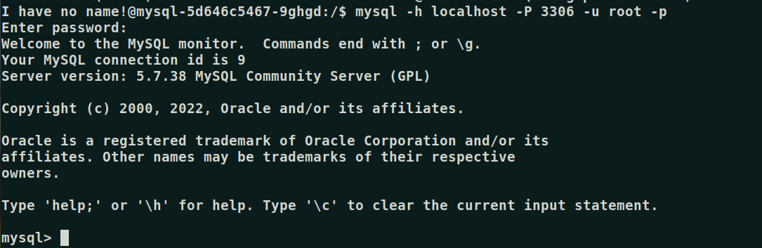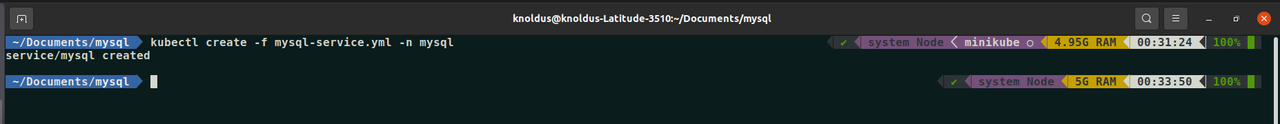 Now MySQL is deployed to node , and we can accesses the MySQL service through the client mysql. Run the following command: